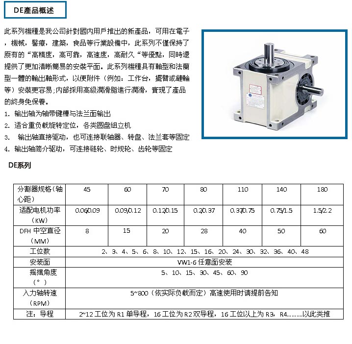 DE心軸凸緣型分割器